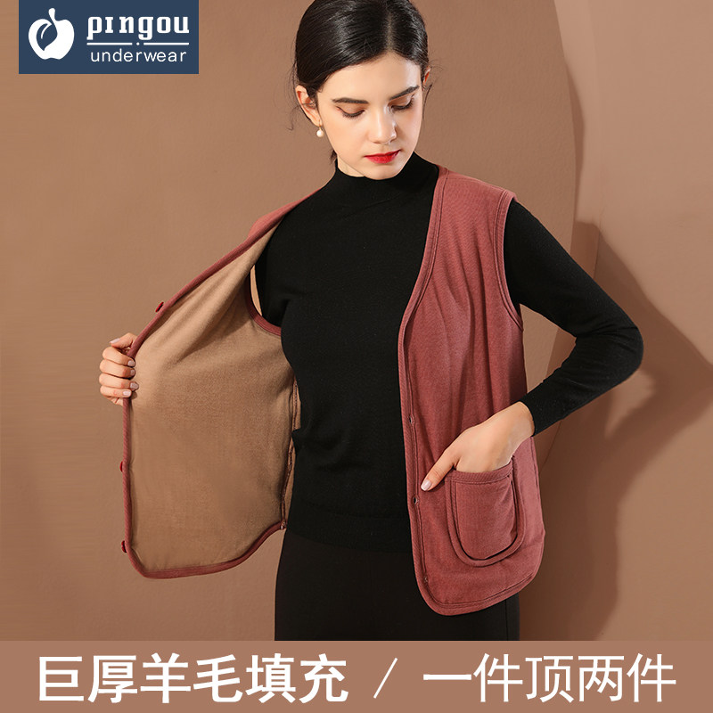 Wool warm vest plus velvet thickened vest vest cardigan sleeveless heating clothing single top middle-aged and elderly winter
