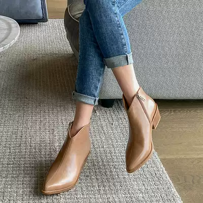 (Hong Xiaoge) handsome western cowboy boots ~ retro pointed v mouth and ankle boots