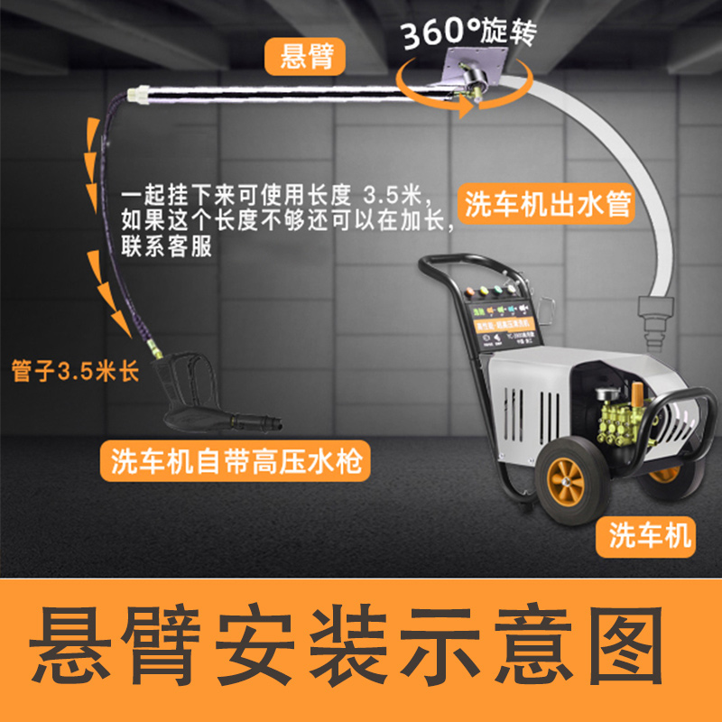 Car wash rocker 360-degree rotating telescopic self-cleaning equipment carport high-pressure water machine stainless steel cantilever swing arm