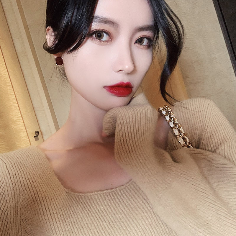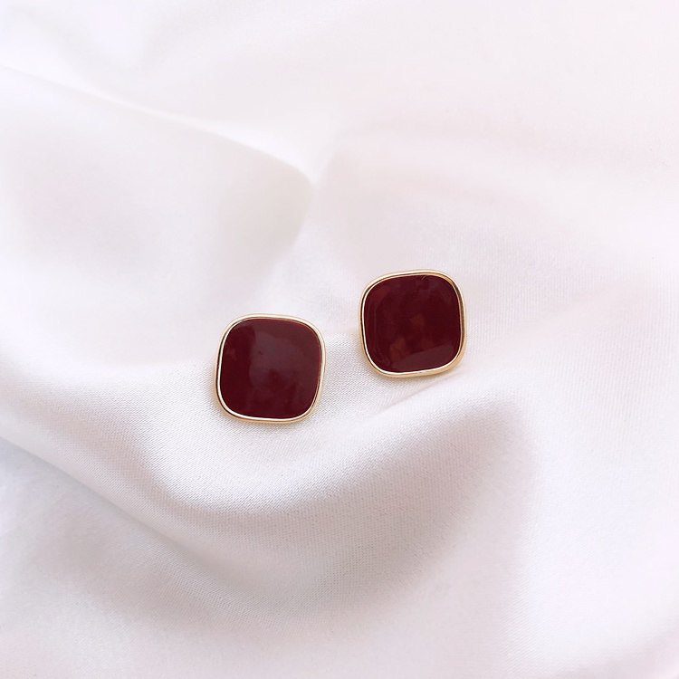 Retro wine red atmospheric high-end earrings female Korean temperament net red 2021 new trendy sterling silver earrings