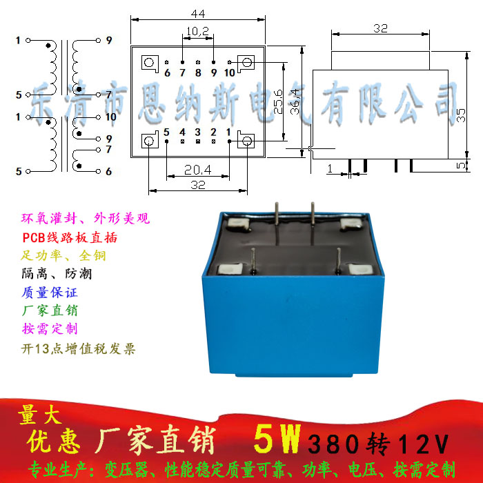 Factory direct sales 5W 380V to 12V 417mA epoxy potting isolation transformer EI type PCB small black clip low frequency