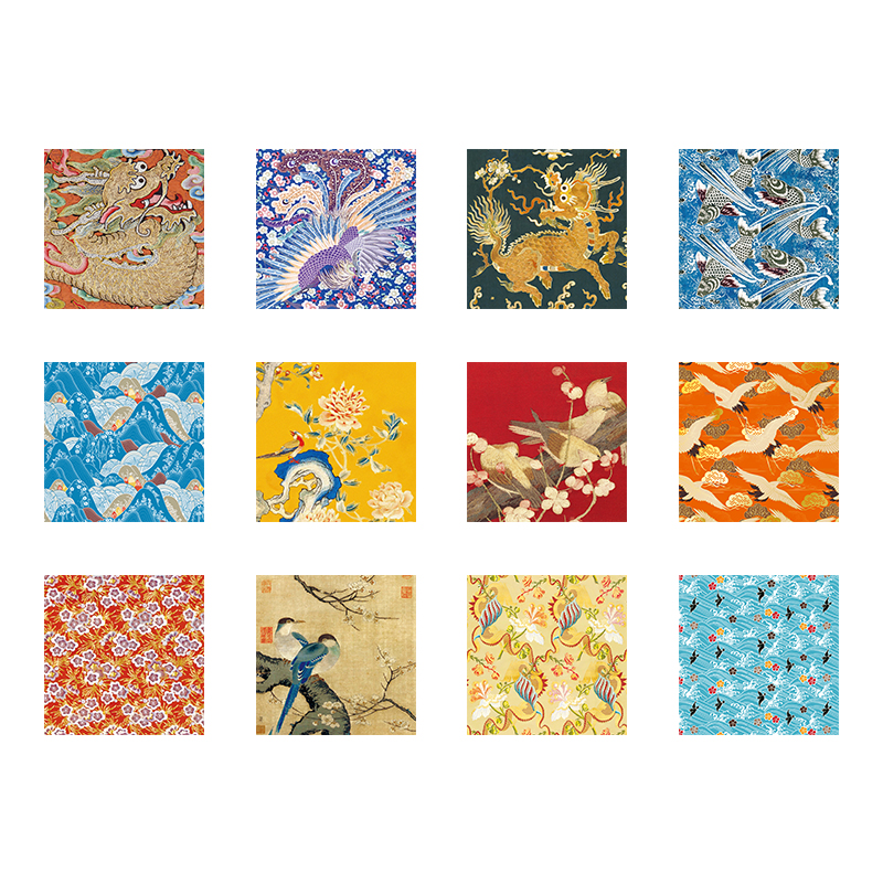 Spring warm flowers bloom on the cake Landscape Zhiyin Flying Dragon in Tianmei Primrose Spring Letter Rich Changchun Long Wind Breaking Wave Fish Leaping Dragon Gate There is a Phoenix Lai Yi Joy On the Eyebrow Qilin Sacrifice Rui Song Crane Extended Year Weaving Embroidery Full Set of 12 Models (No Set Gift Box)