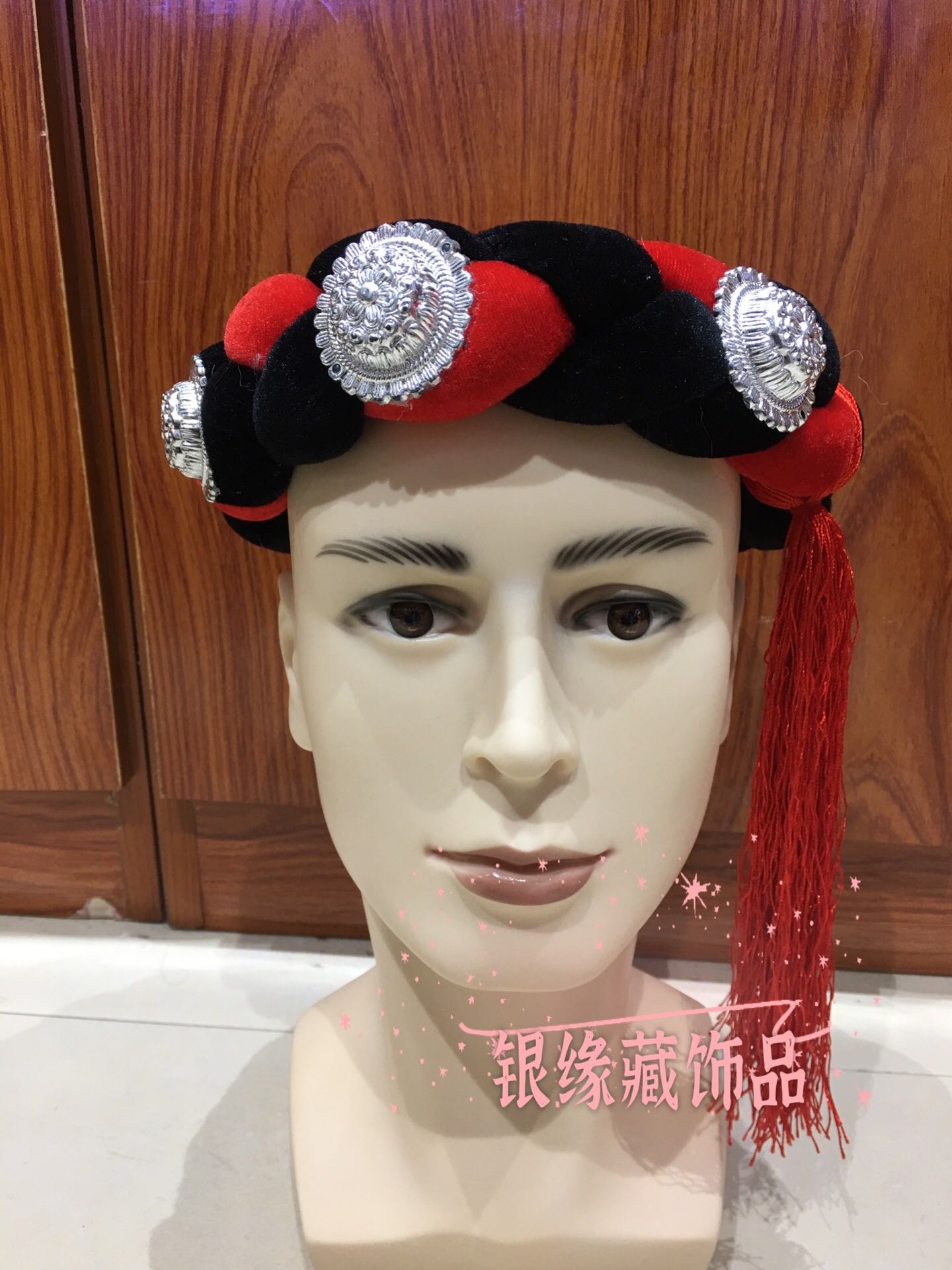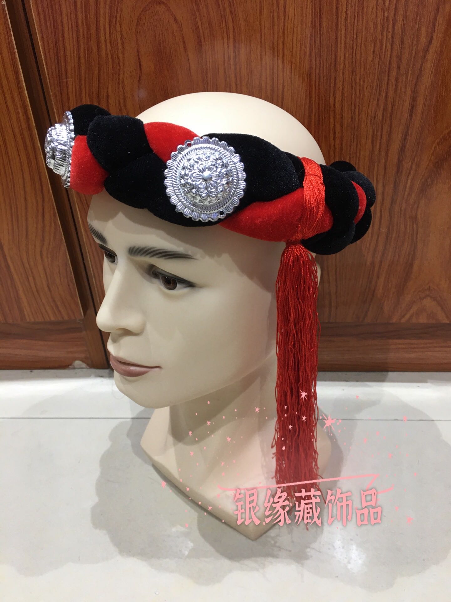 Silver edge Tibetan jewelry Tibetan men's Tibetan dance headdress Wedding festival men's hair accessories headdress 2 pieces