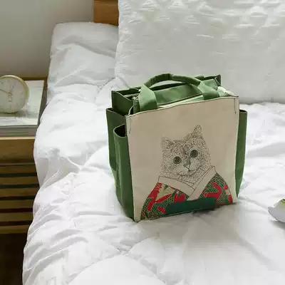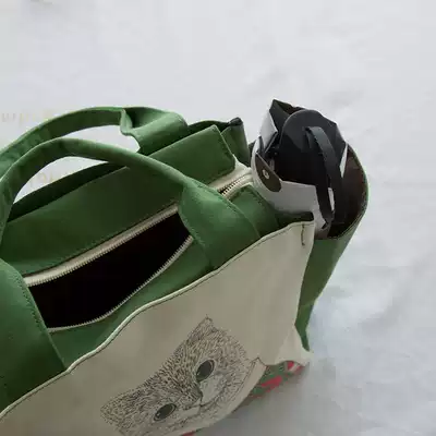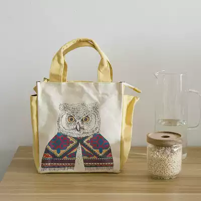 Cute hand carrying lunch bag canvas portable lunch bag large capacity lunch with rice bag Japanese zipper Mama bag