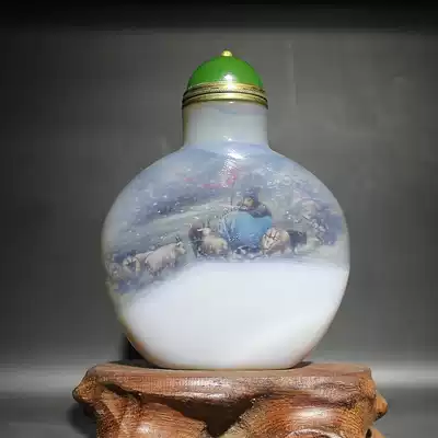 Natural agate cleverly painted inner painting snuff bottle"Fishing alone cold river snow"