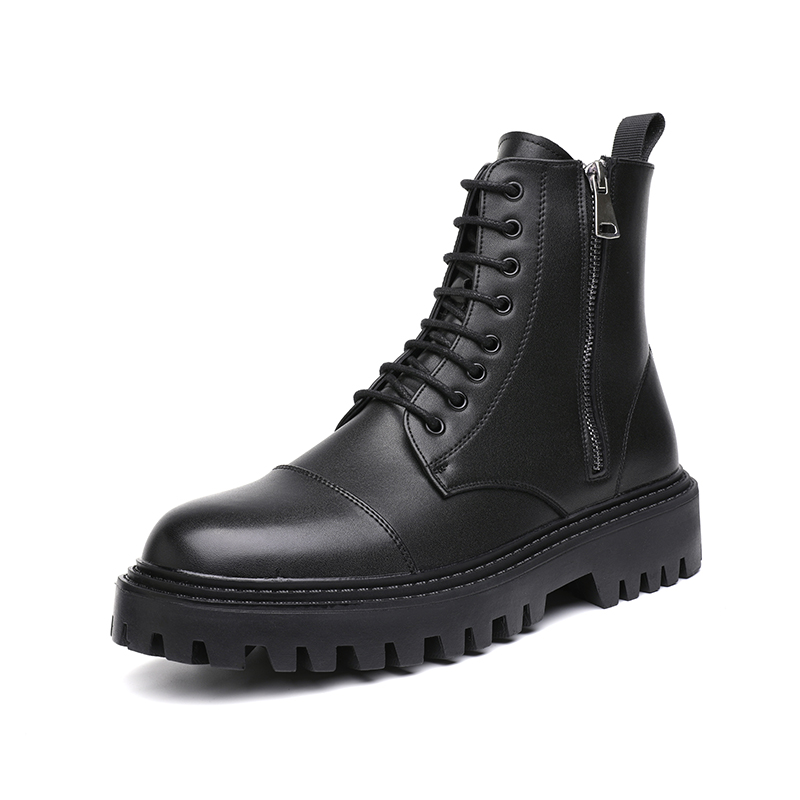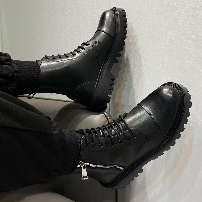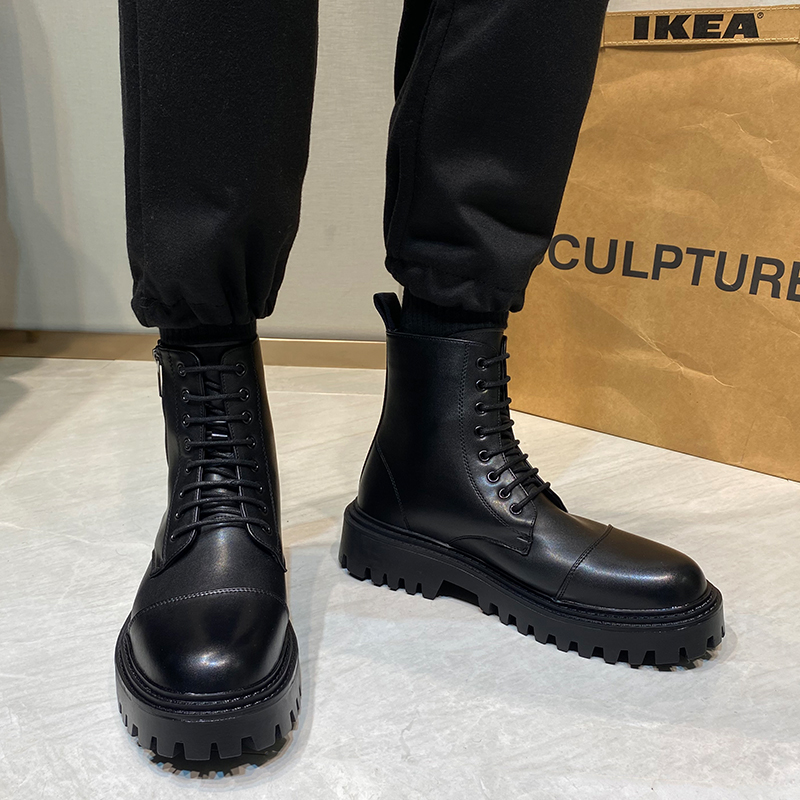 Martin Boots Male High Gang Winter Plus Velvet Wind Black Trend Midbarrel Thick Bottom Tooling Locomotive Real Leather Boots Man