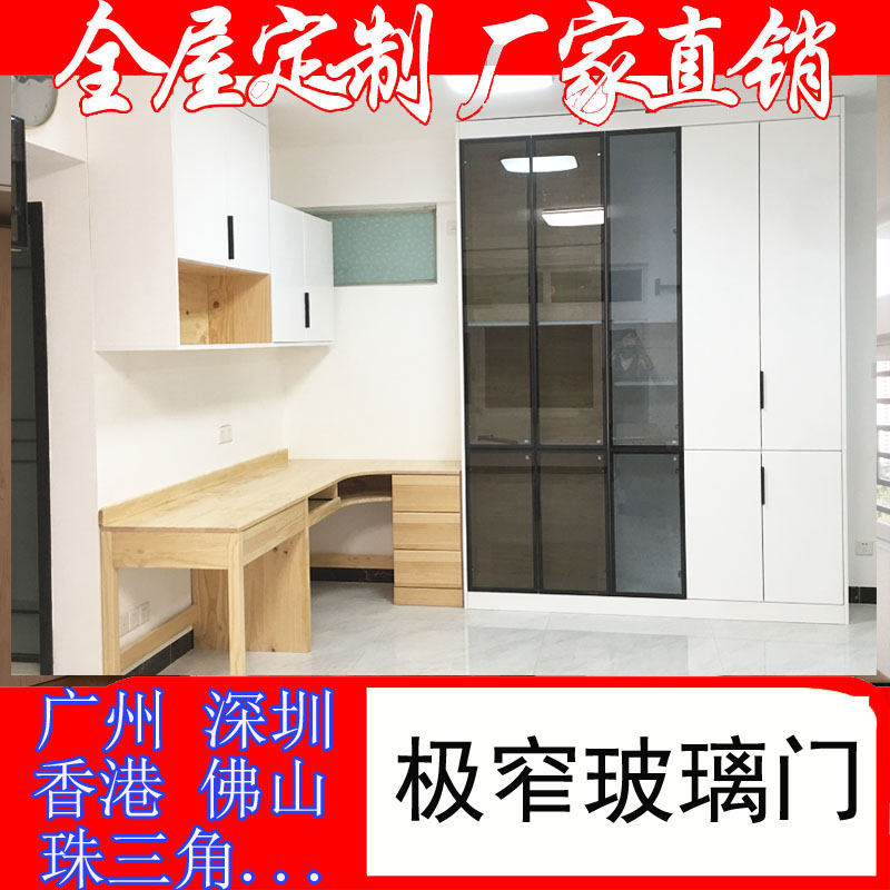 Guangzhou Whole Solid Wood Full House Custom Extremely Narrow Tempered Glass Door Pine Wood Wardrobe Desk Shoe Cabinet Manufacturer Direct environmental protection