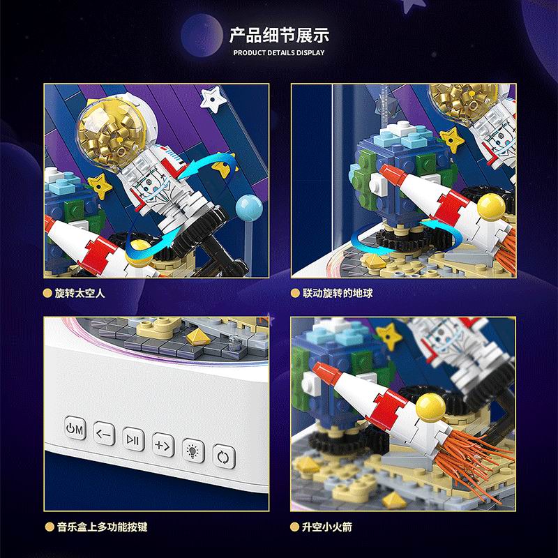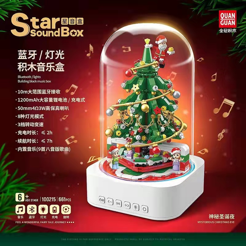 Rotating Light Music Christmas Tree (486 granules) Christmas Swivel Light Lodge (249 granules) Christmas Tree Rotating Building Blocks Light Music Cartridges Bluetooth travel to space Music Box Light Music cartridges Blue