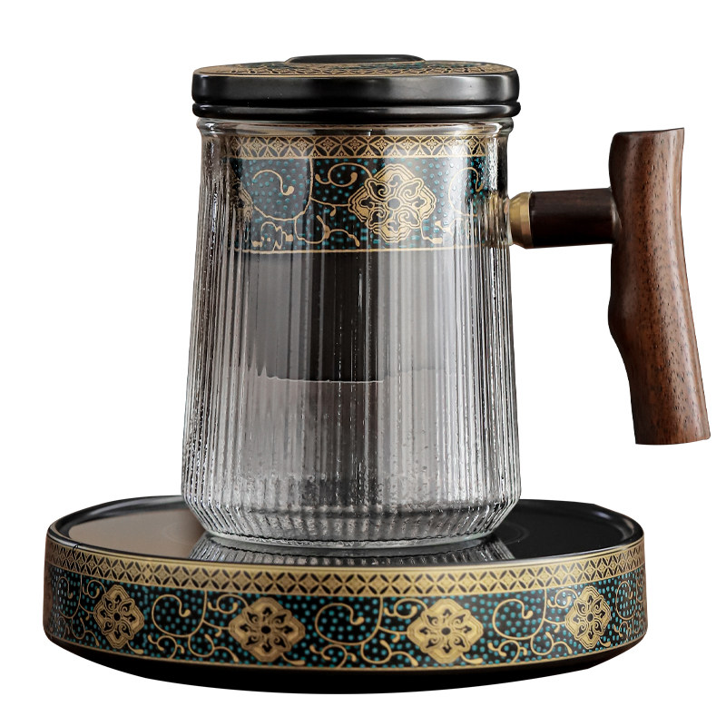 Dwarf Glass Cup + Thermostatic Cup Mat Vertical Stripe Glass Cup + Thermostatic Cup Cushion Heaps Thermostatic Cup Cushion Heaps of flowers Vertical striped glass goblet with short glass goblet