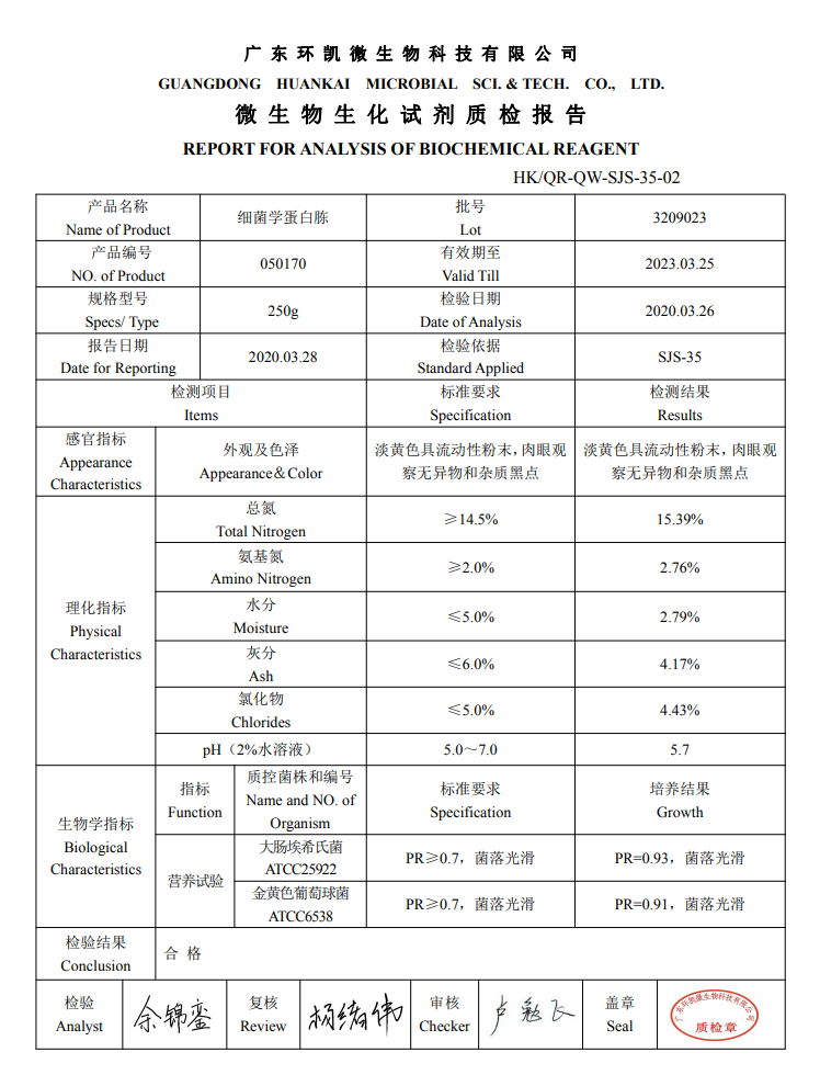Bacteriological peptone 050170 Guangdong Huankai 250g microbial culture medium raw material