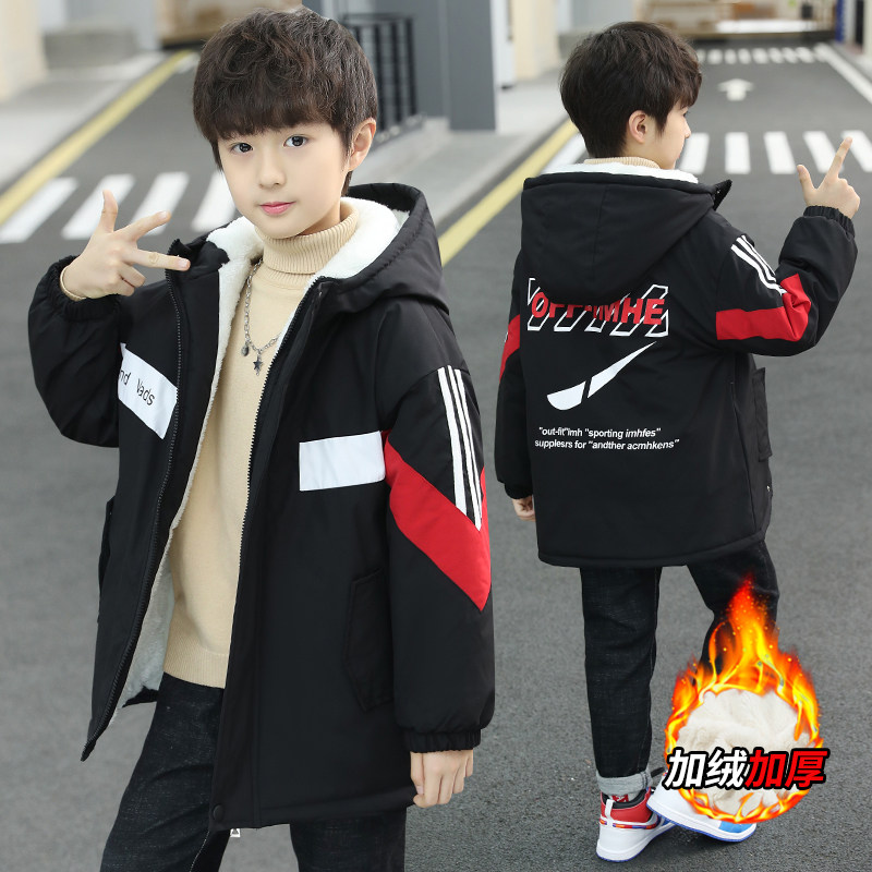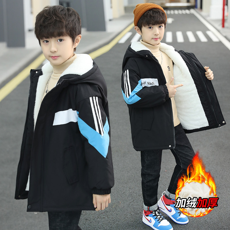 Children's suit boys plus velvet jacket autumn and winter 2021 Winter thick cotton padded clothing middle child windbreaker spring and autumn foreign pie