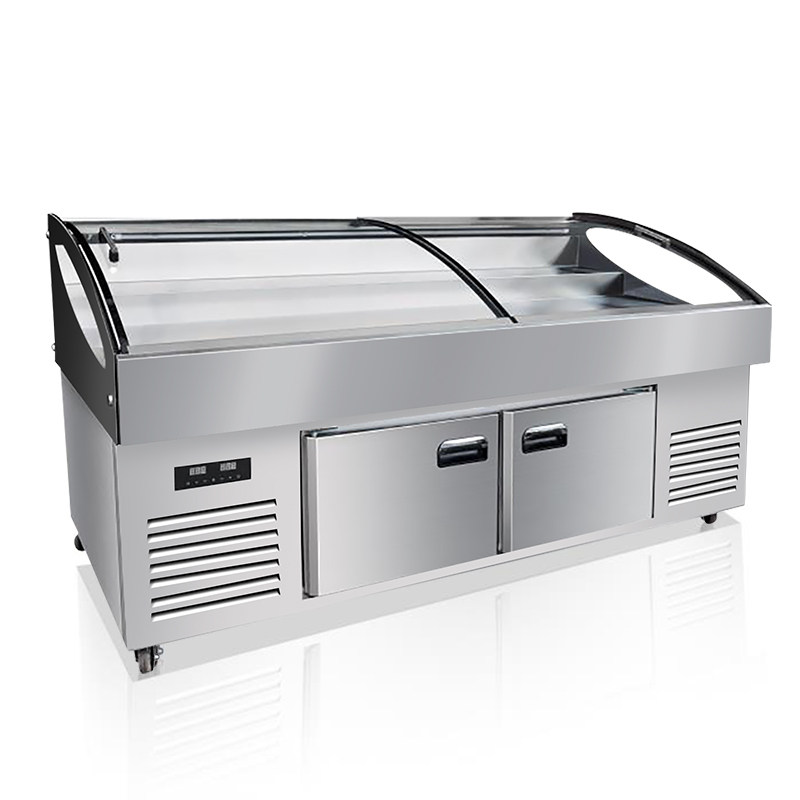 Chengxue 2 meters flat glass double temperature stainless steel ice table refrigerated and refrigerated display cabinet freezer refrigerator