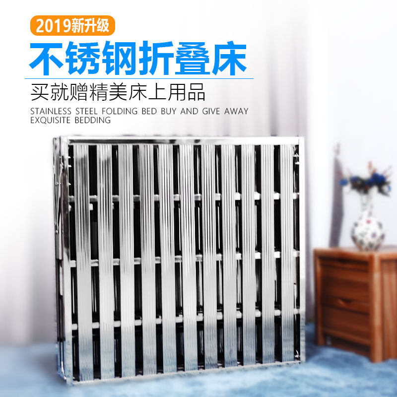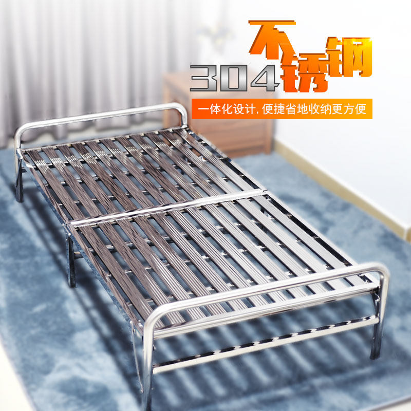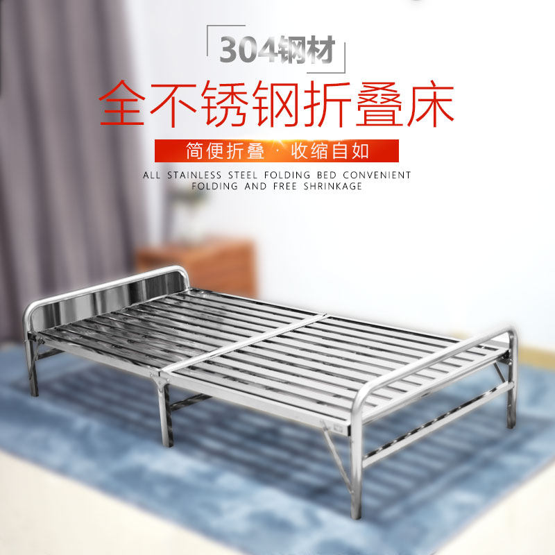 Stainless steel folding bed Lunch break Simple adult household single bed Double 1 5 nap portable bed frame 1 2 meters 1m
