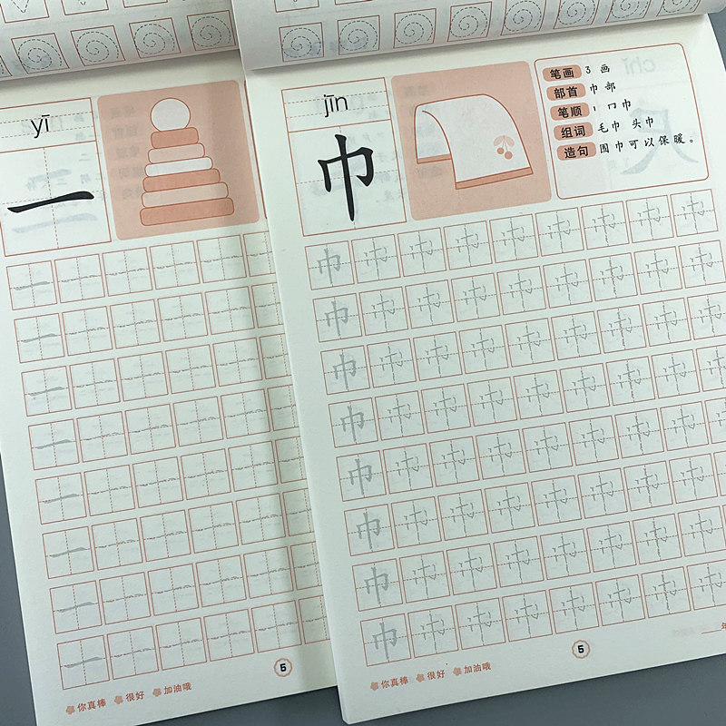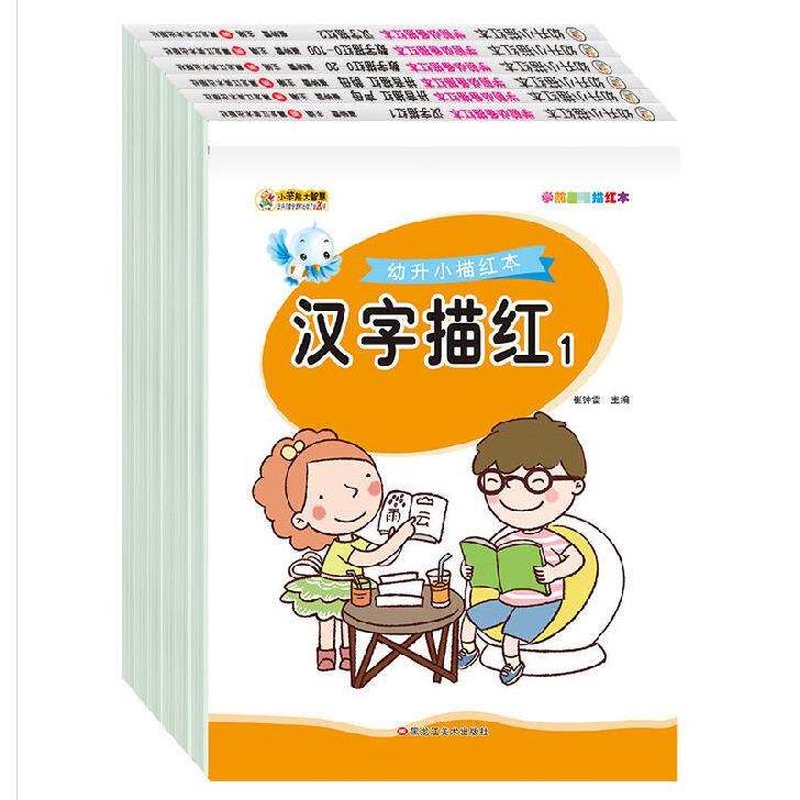 Chinese characters scanned red field character dotted line depiction red beginner enlightenment practice post kindergarten textbooks pre - school children pencil writing children to first grade