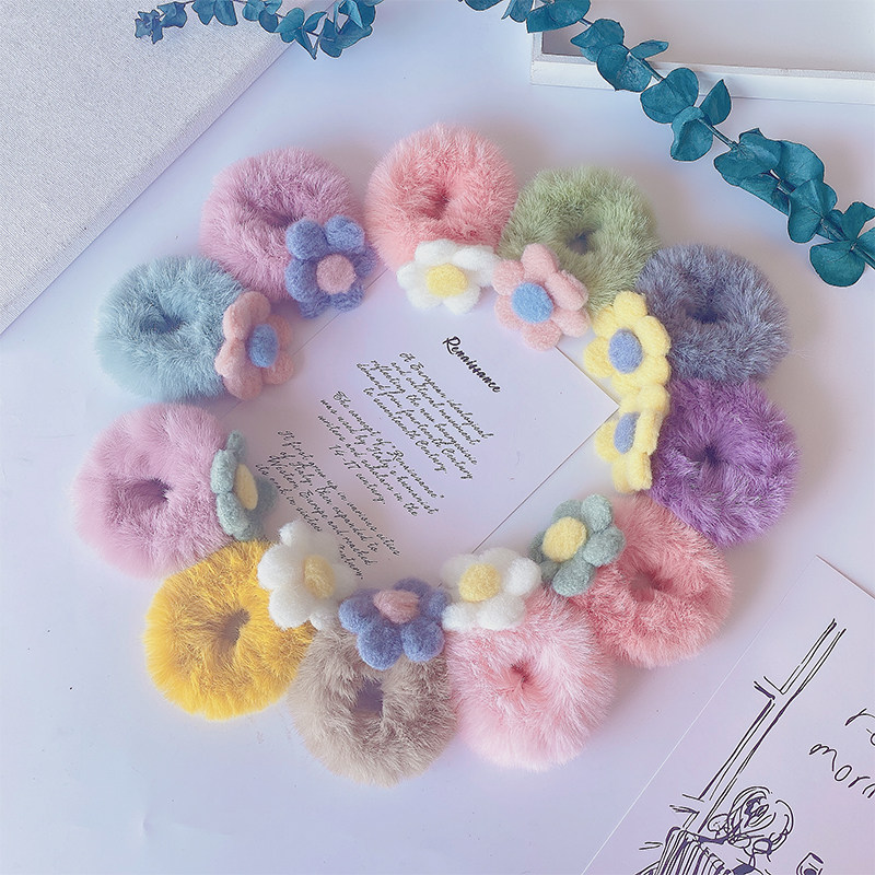 Yang Beyond the same Plush Hair Circles Candy Fruits Color White Imitation Rabbit Hair Rope Softgirl Double Mati Jk Hair Hair Accessories