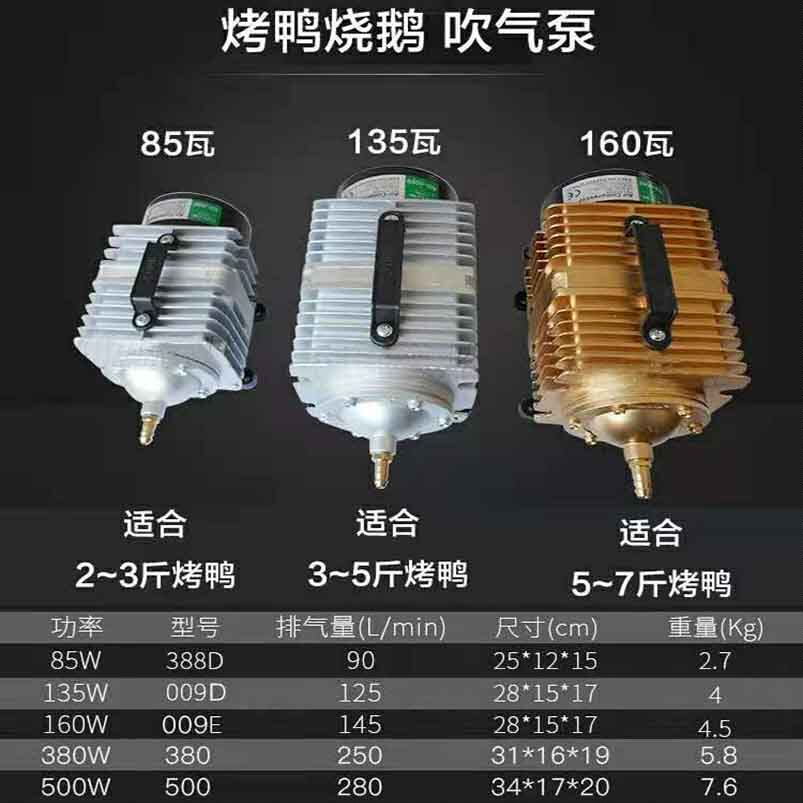85W (2~3kg roast duck) send 2m hose 135W (3~5kg roast duck) send 2m hose 160W (5~7kg roast duck) send 2m hose 380W (about 8kg roast)