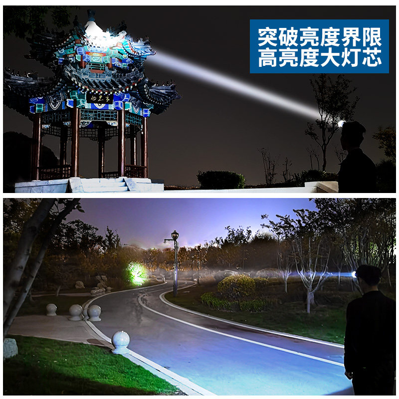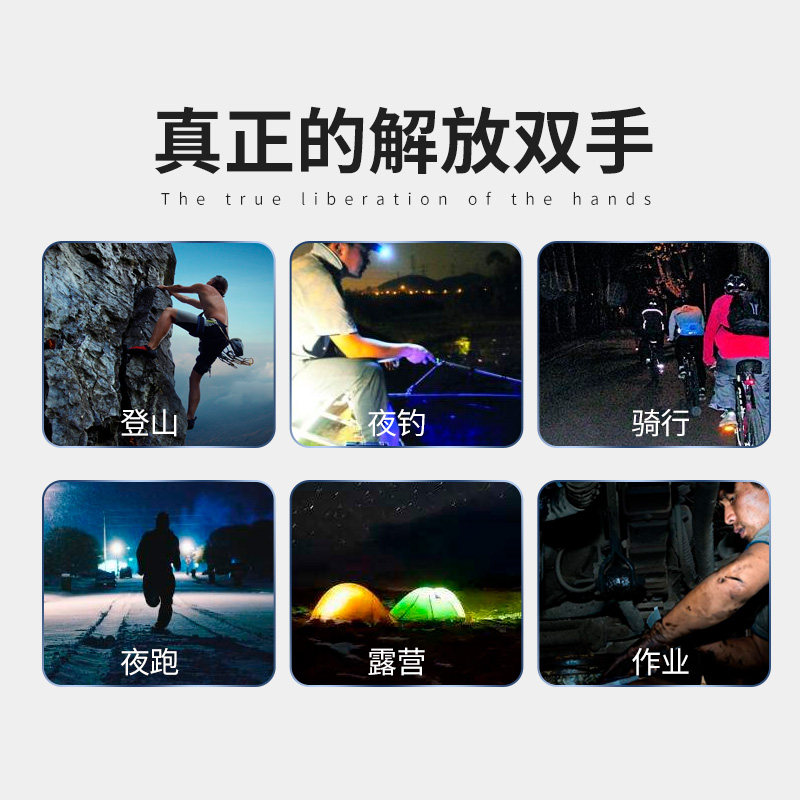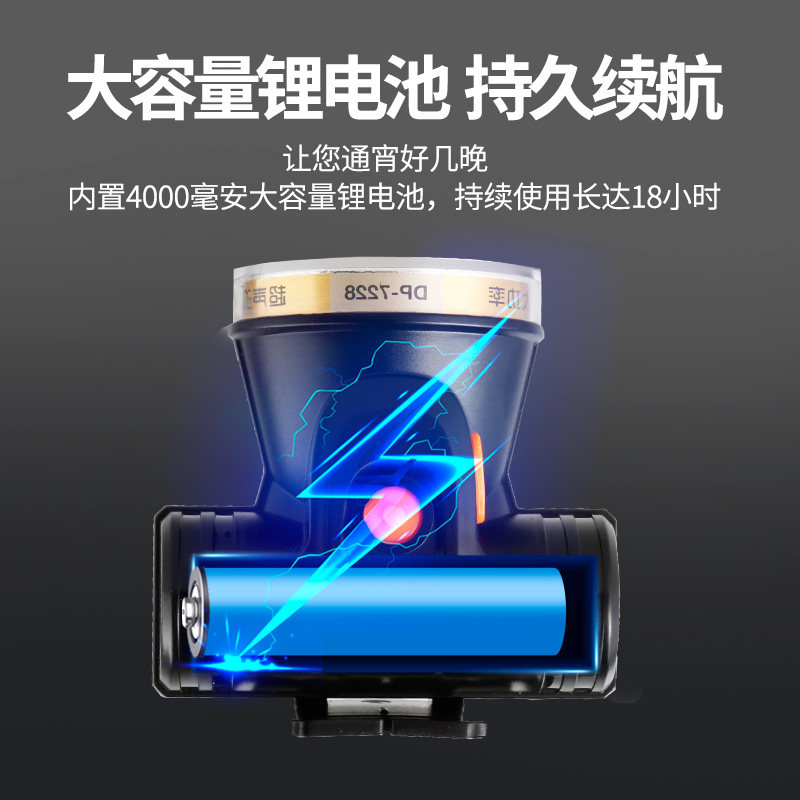 Long-volume LED headlights intense light charge ultra-bright headlong sequel Far-shot outdoor ultralight fishing Xenon lamp