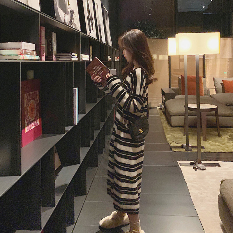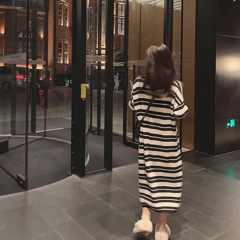 Black and white striped dress black and white striped dress + plush socks black and white striped dress + plus plush cotton pants