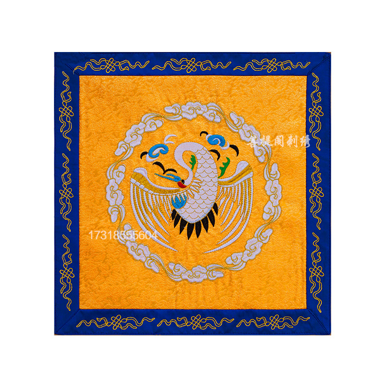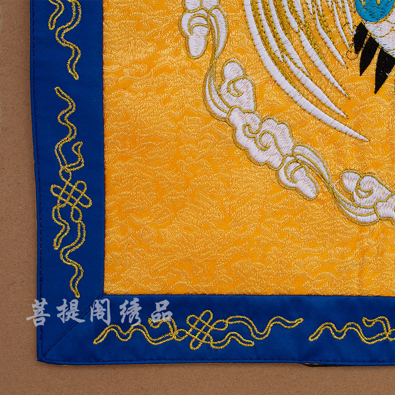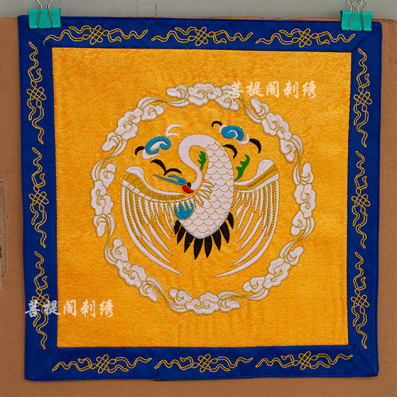 Bodhi Loft New Buddhist Taoist Gai Warp Fairy Crane Embroidery Yellow Bottom Blue Side Warp Book Cloth Bag Warp Cloth Gossip Fairy Crane
