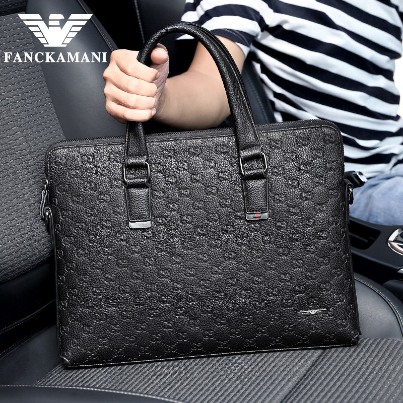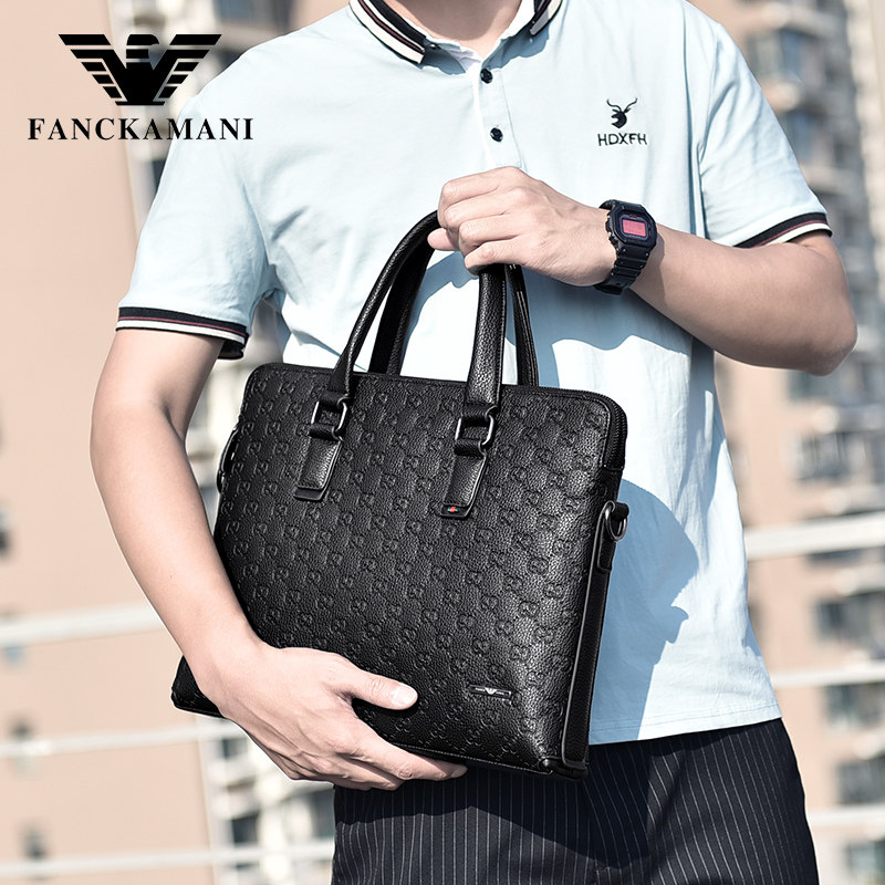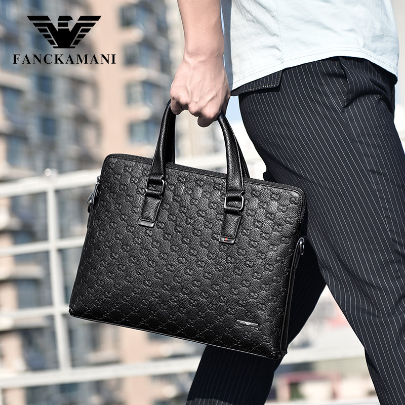 Kerry Armani Men's Handbag Genuine Leather Horizontal Briefcase Men's Business First Layer Leather A4 Computer Messenger