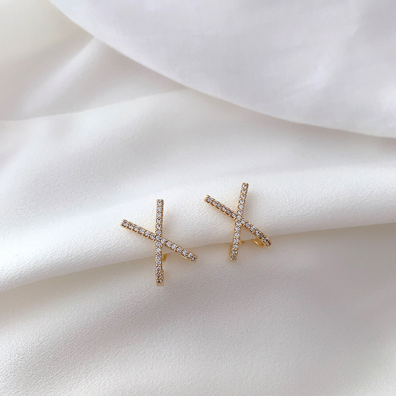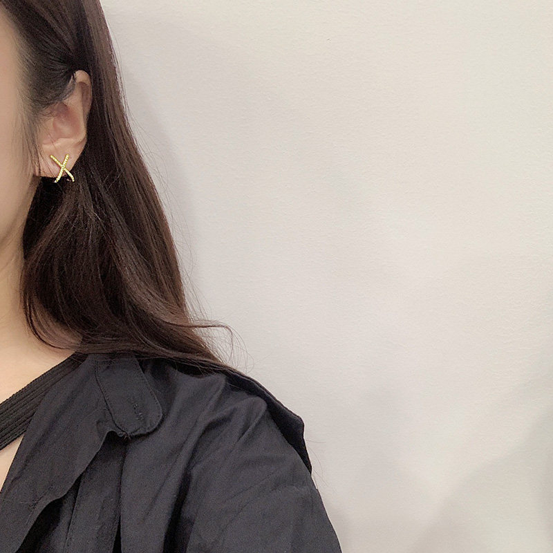 Golden (silver needle) cross X type ear pin gold (mosquito coil pan ear clip) cross X type ear clip