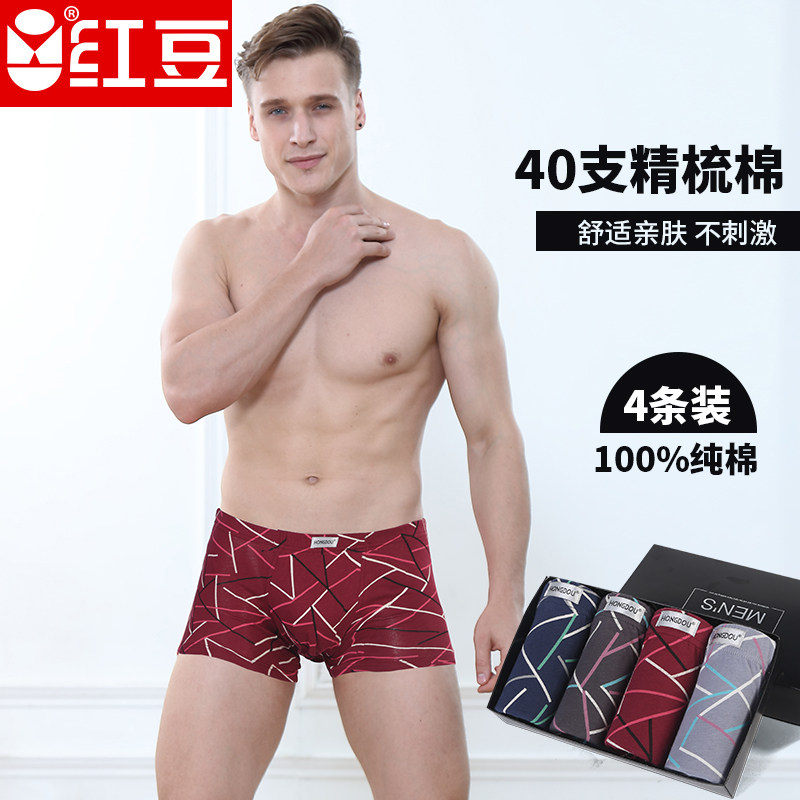 Red Bean Male Style Youth Pure Cotton Full Cotton Combed Cotton Pants Head Breathable Men Striped Flat Corner Underwear
