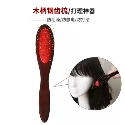 Wig comb Wooden handle steel comb Long hair special care wig combing tool Anti-static wood comb Airbag steel teeth