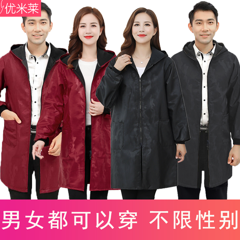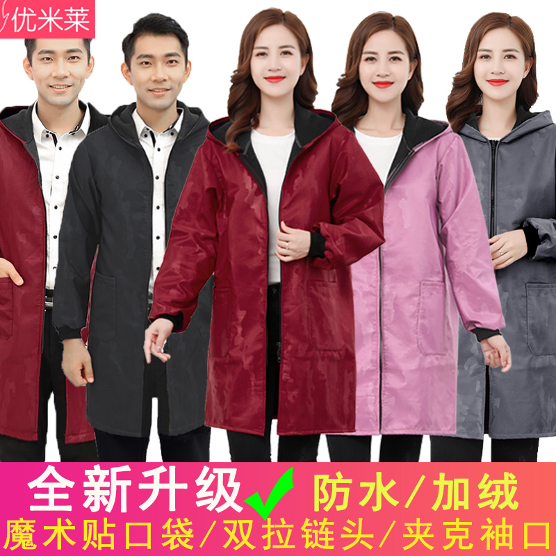 Overcoat adult women's autumn and winter plus velvet thickened waterproof jacket long-sleeved apron adult kitchen top overalls