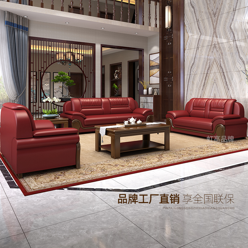 Office sofa simple three modern simple fashion business leather reception conference room reception tea table set