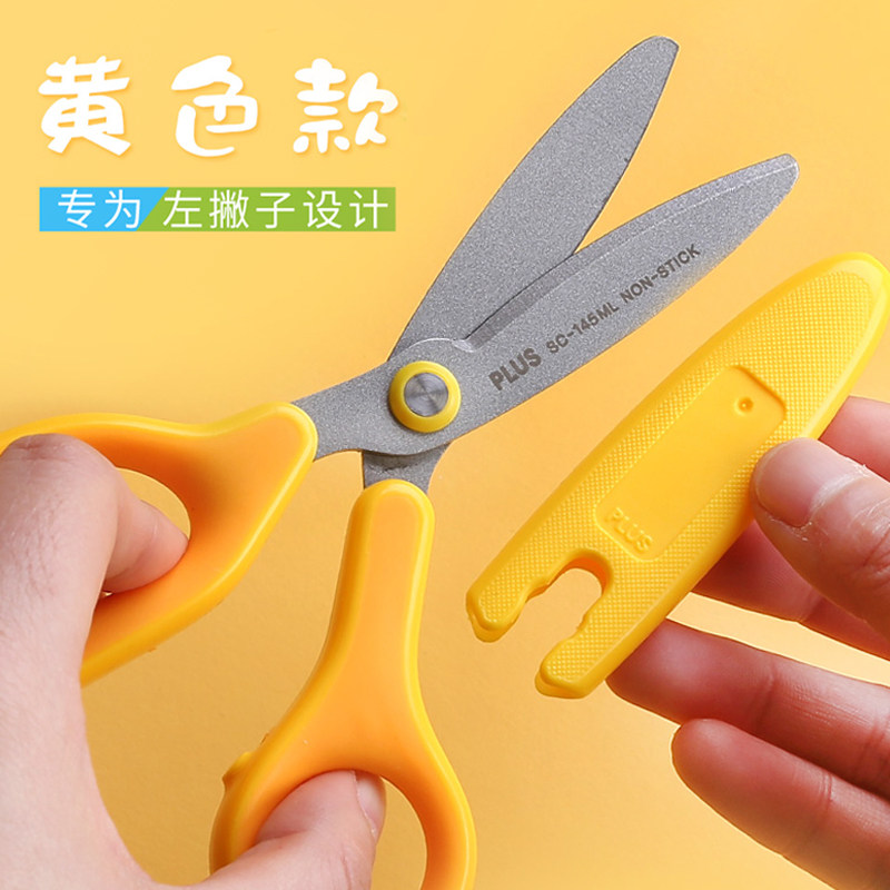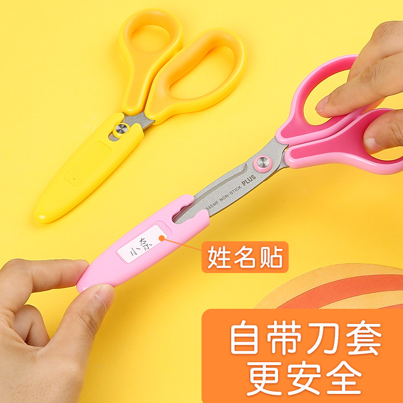 Japan plus Pulus children's safety scissors Primary school kindergarten hand-cut paper left hand left-handed special trumpet round head Home art portable does not hurt the hand with a protective cover Custom