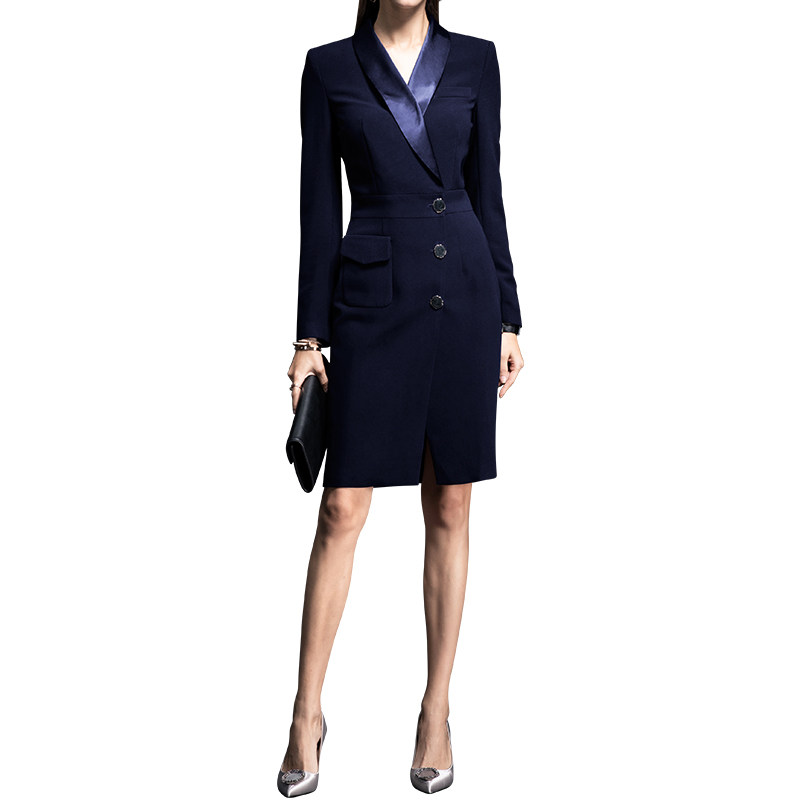 High-end work clothes Temperament Goddess Van Hidden Cyan Workplace Interview Positive Sample House Display Center Work Suit for Spring and Autumn