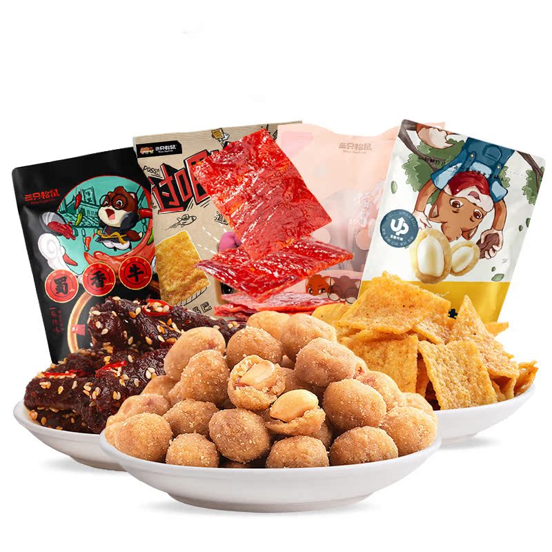 (Three Squirrels _ Snacks Big Gift Bags) Nets Red Casual Food Whole Boxes Mixed Nuts Puffed Gift Giving Gifts