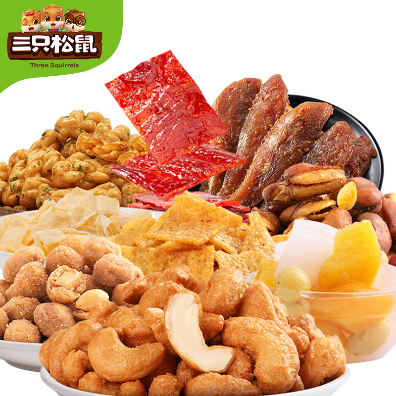 (three squirrels _ snacks big gift packages) net red casual food whole box mixed fruit and great gift bag sharing dress