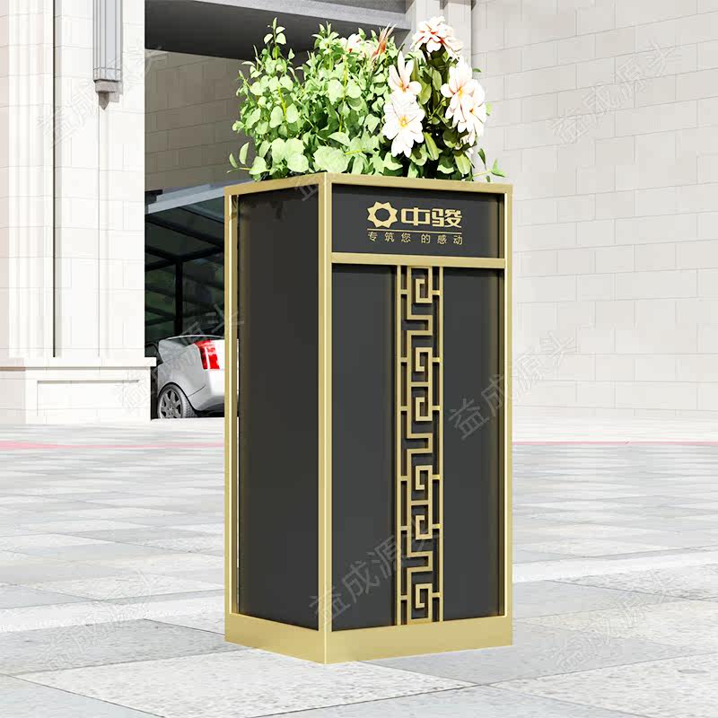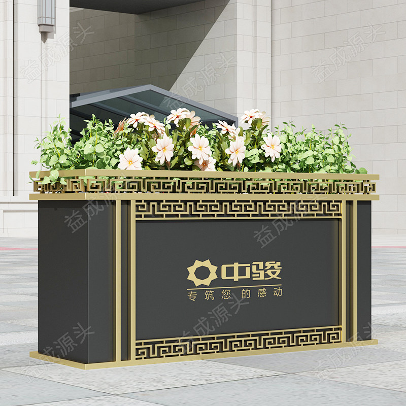 New Chinese Iron Art Flower Case Outdoor Composition Flower Beds Sample House Display Central Square Commercial Street Flower Groove Planting Rectangular Flower Pool
