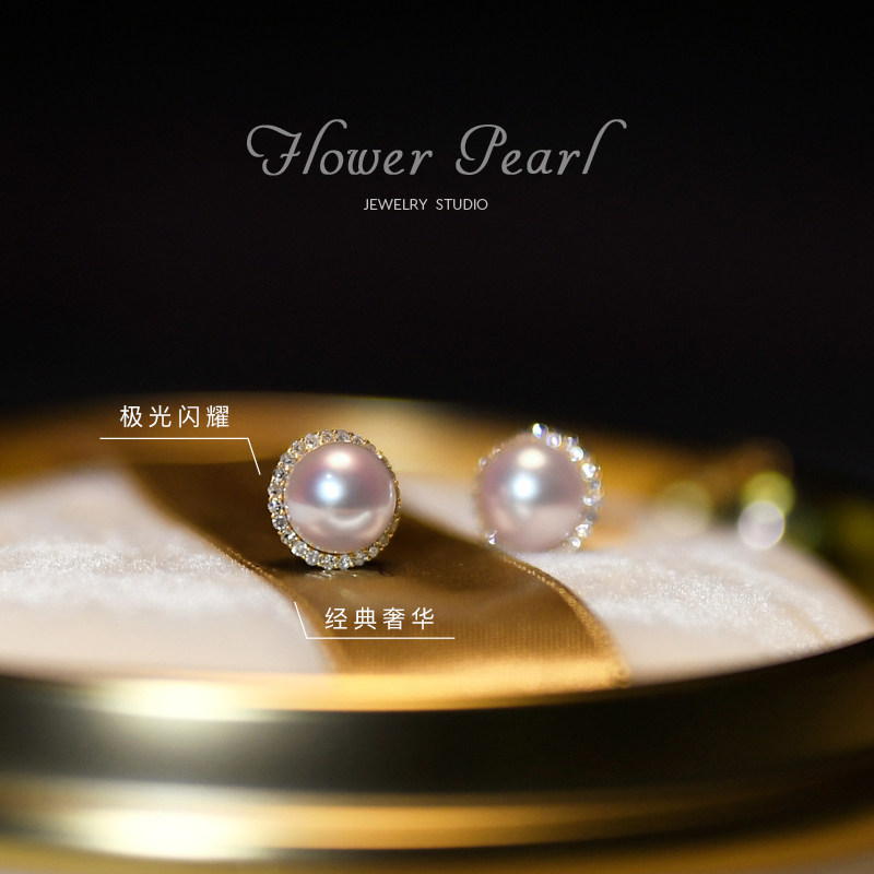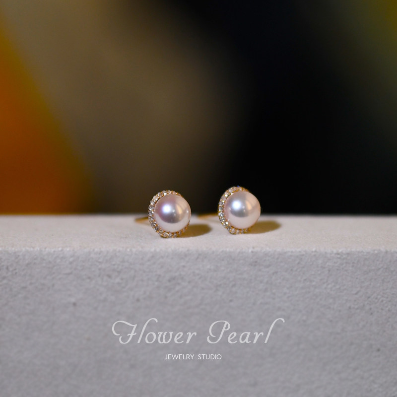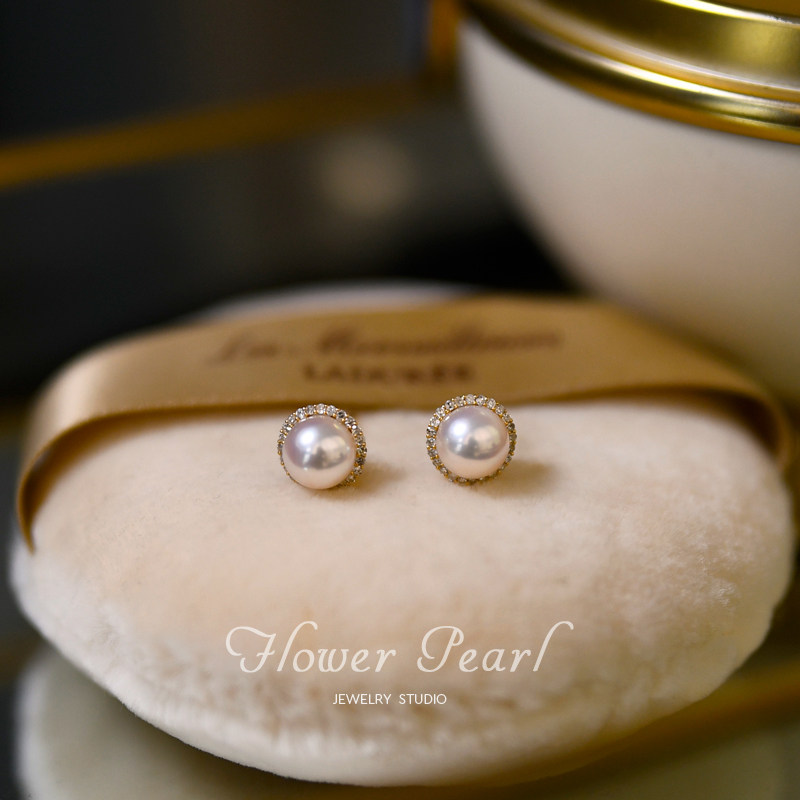 Hashida • Sun and Moon Stars Diamond Mass with Japanese Aurora Akoya Natural Sea Water Pearl 18k Golden Ear Needle