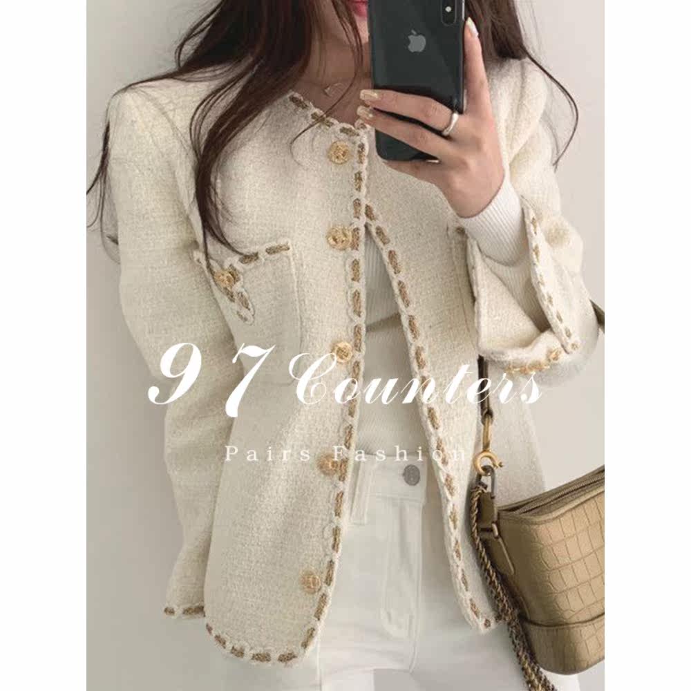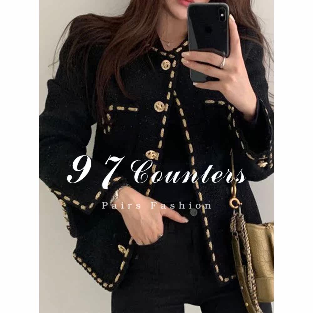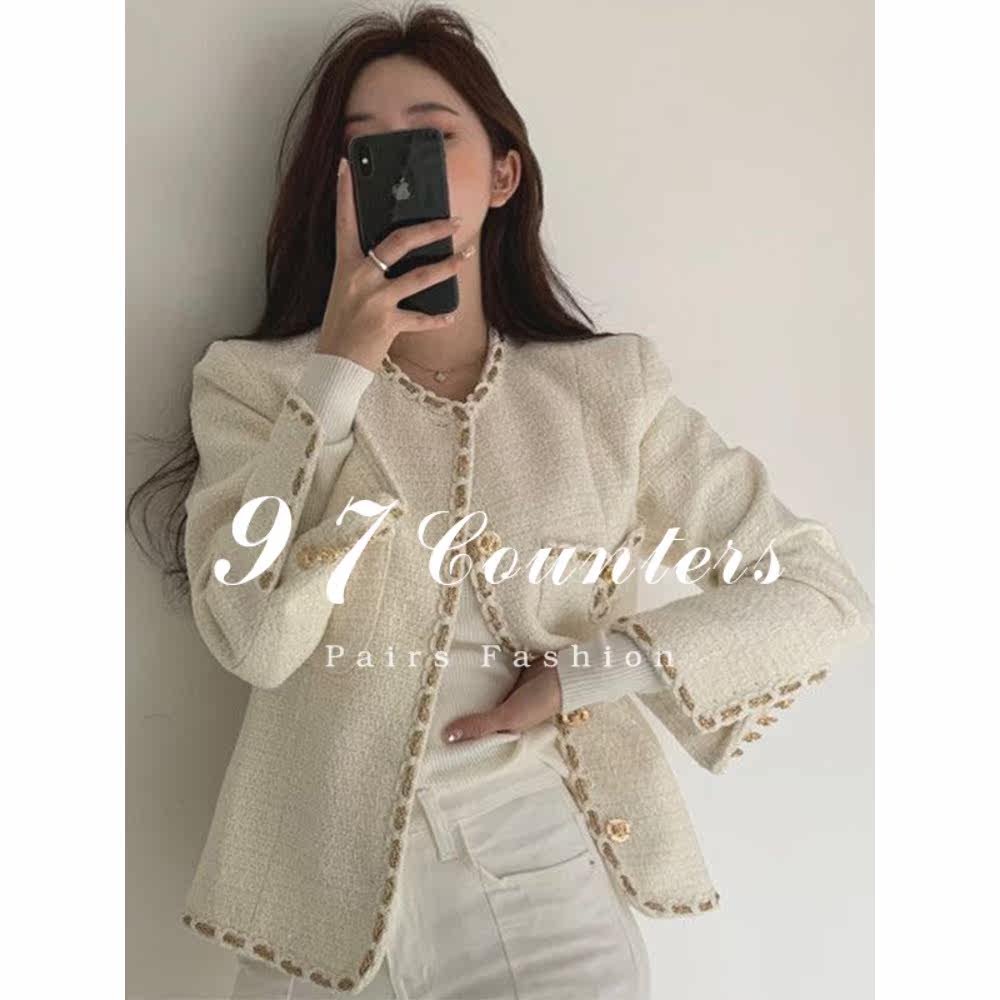DOEN MOCY Xiaoxiang Coarse Flowers Coats Women's 2023 Fall New Korean Version Retro Famous Hime Hair Blouses-Taobao