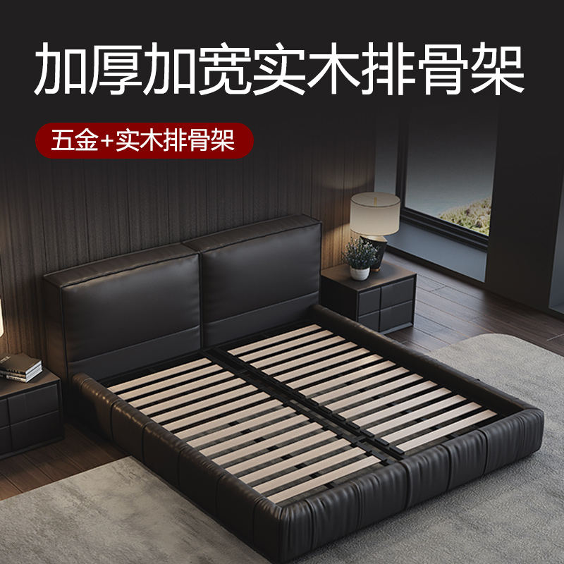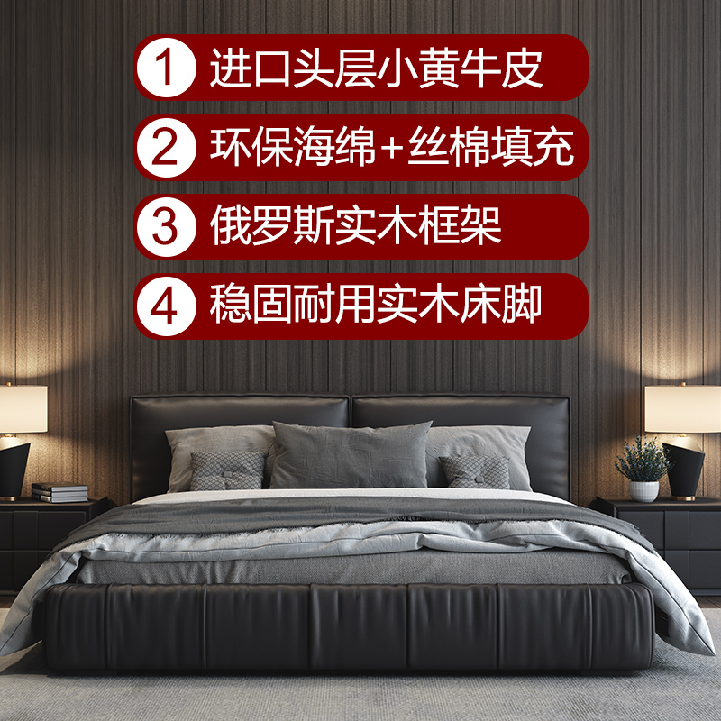 Italian light luxury bed modern minimalist master bedroom double bed 1 8 meters Nordic minimalist soft Baotou layer leather wedding bed