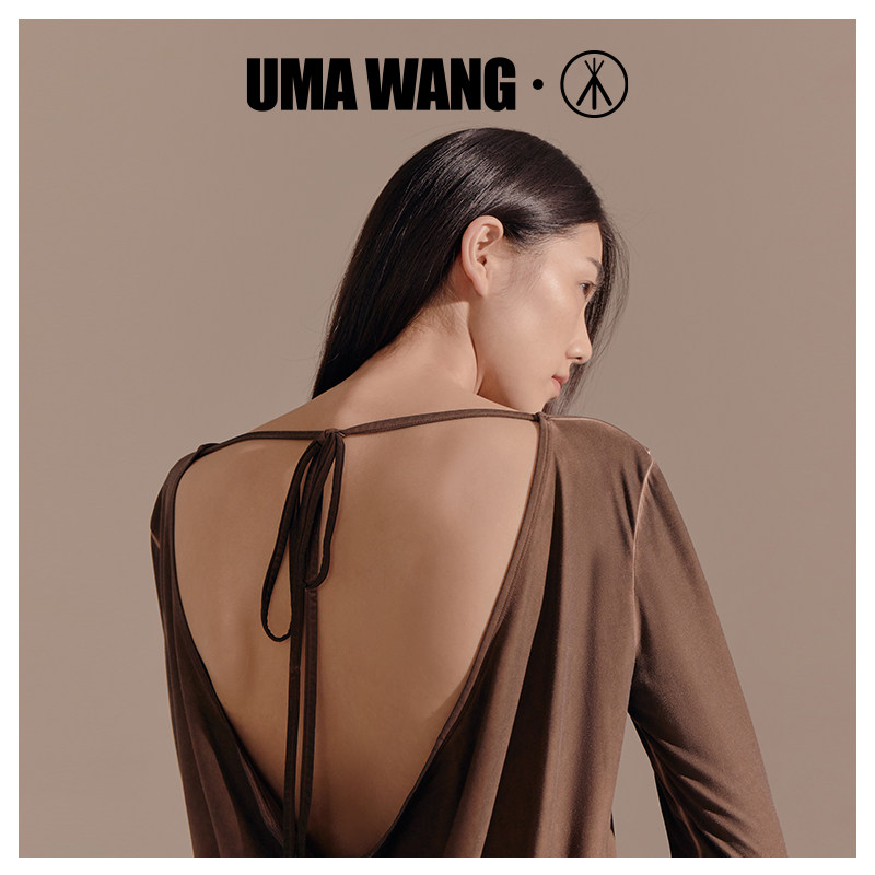 UMA WANG co-branded] three guns Shanghai Fashion Week leggings women's backless dressing Modal skin-friendly long-sleeved tops
