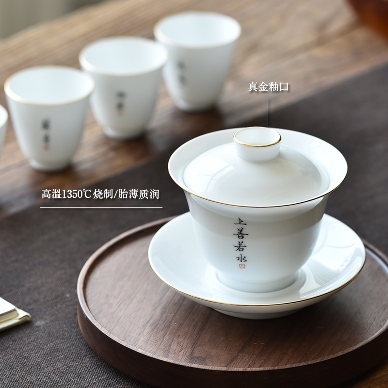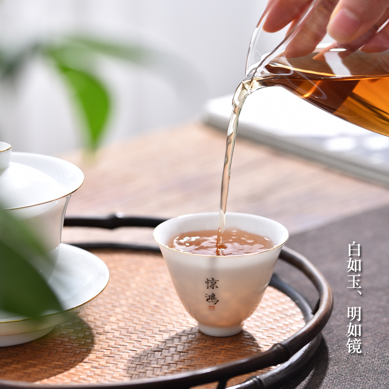 Jingdezhen Lettering Tea Cup Ceramic Thin Tire Tasting Cup Kung Fu Tea Cup Master's Cup Little Single Cup Tea Set Private Custom
