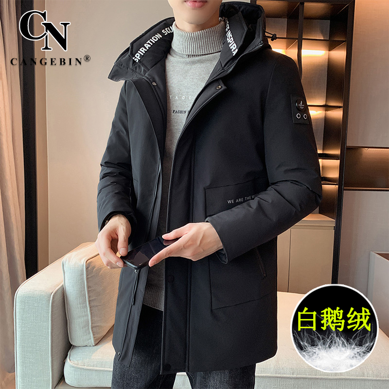 Down clothes men's mid-length version of big goose down 2021 new light and thin national Chaodey overalls The winter thickening faction overcomes
