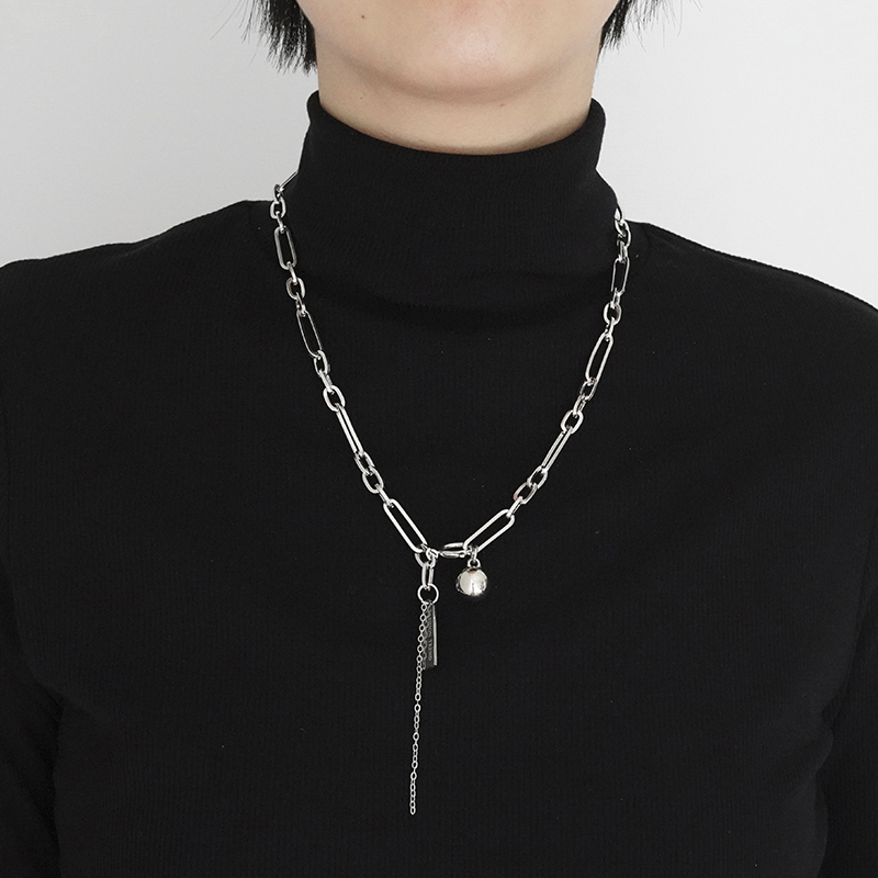 KANSAI Japan and South Korea cold wind metal ball pendant thick necklace ins trendy sweater chain niche design temperament - Taobao
