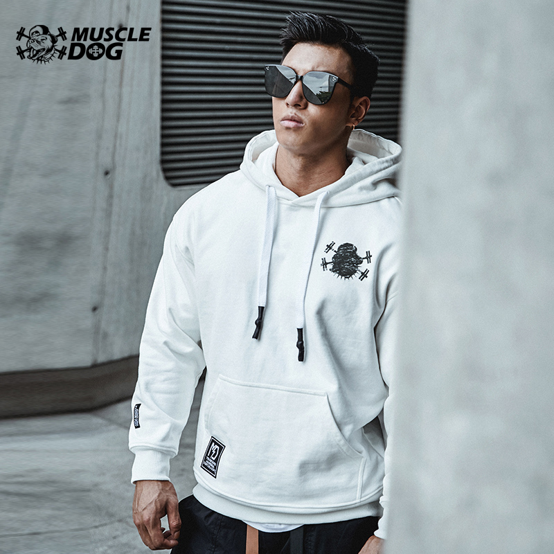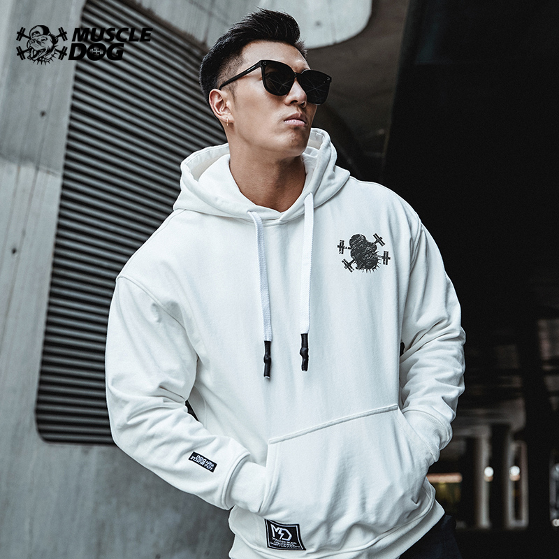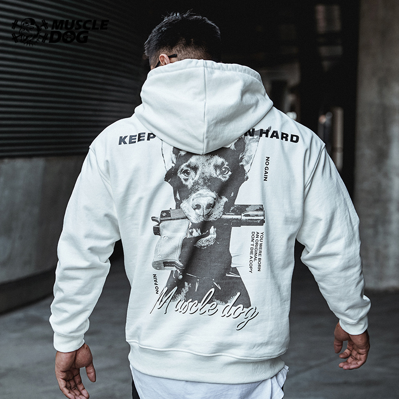 Muscle dog autumn and winter new fashion brand printing loose pullover fitness clothes training clothes sports and leisure thick cotton T-men