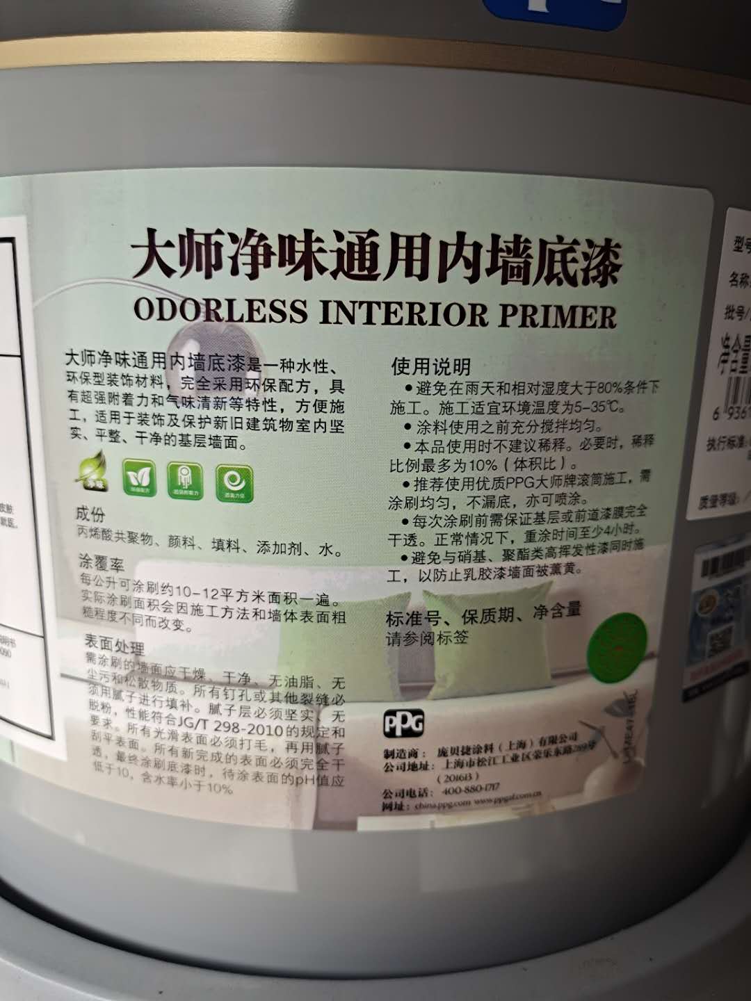 PPG master paint Indoor universal primer Wall paint Environmental protection alkali-resistant latex paint Matte interior wall 18L paint paint