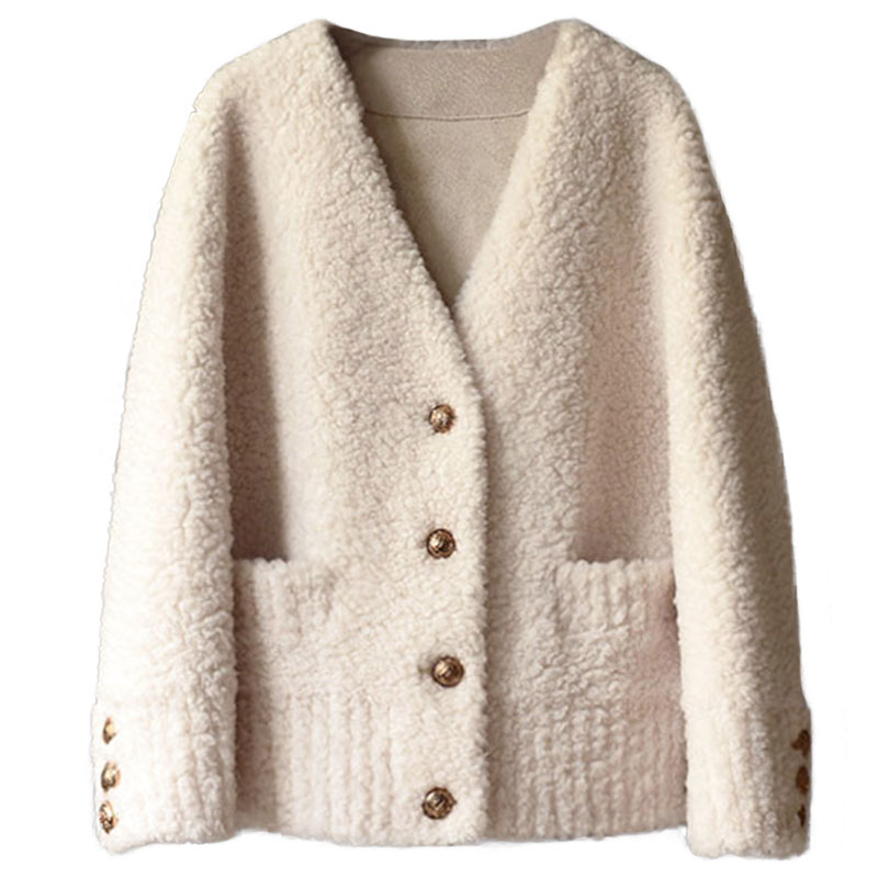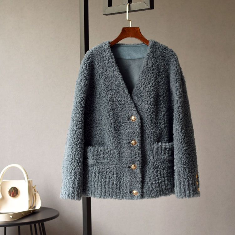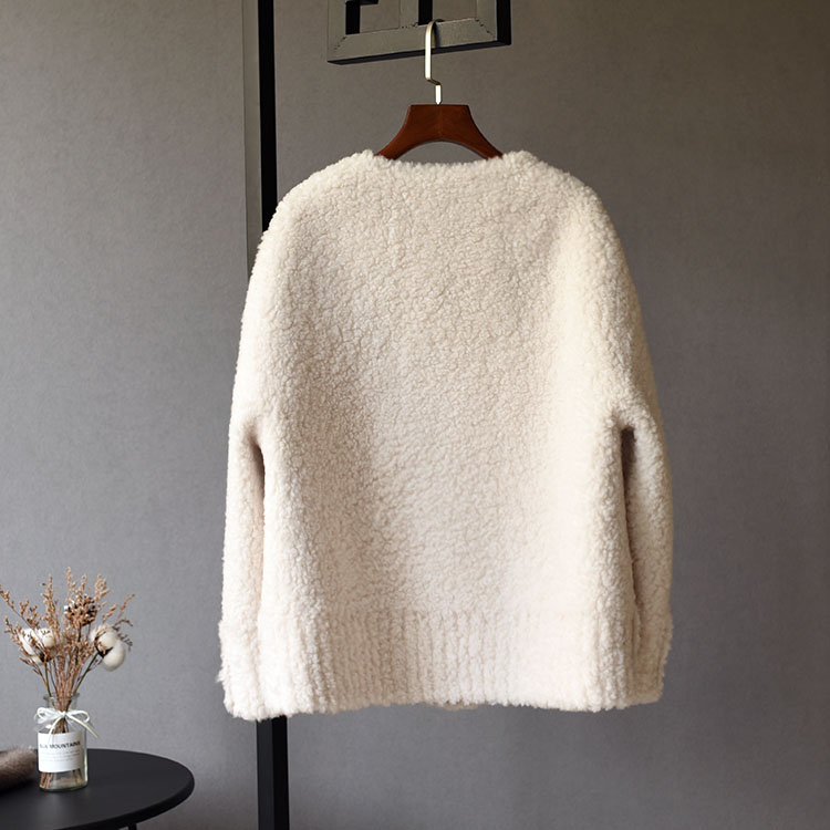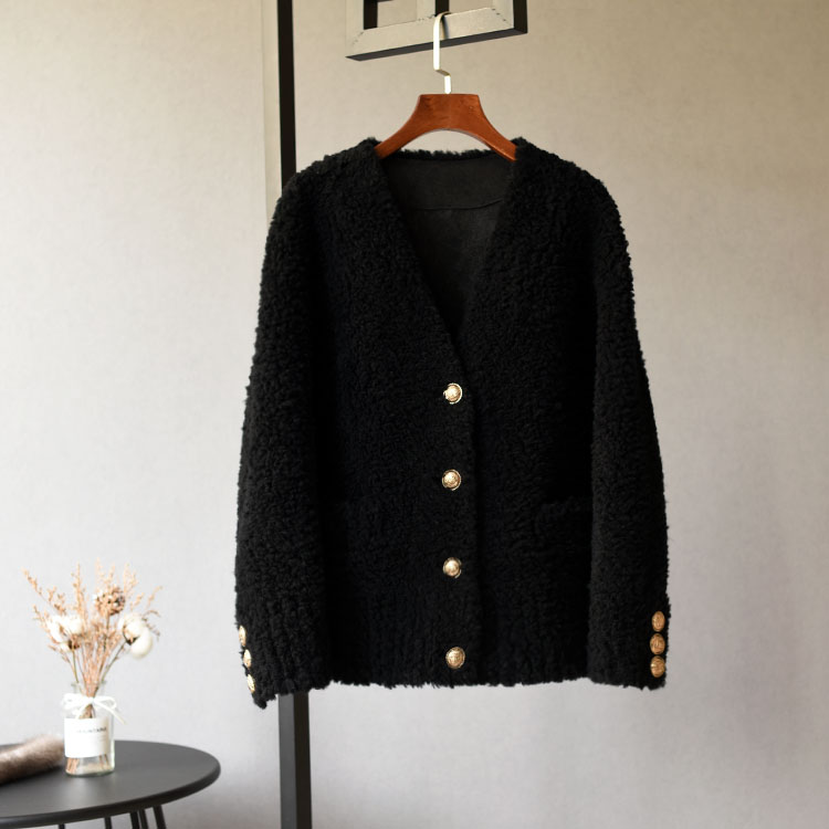 Autumn and winter new sheep shearing cardigan shear fur one-piece coat women's short lamb fur V-neck thick coat