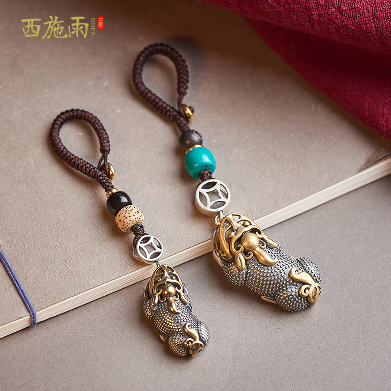 S925 silver car keychain pendant men's high-grade sterling silver Pixiu personality custom key chain pendant female cute