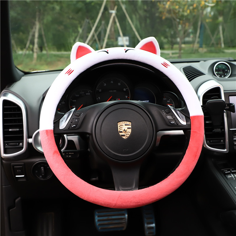 Car plush steering wheel cover female four seasons universal non-slip sweat-absorbing handle cover winter fur Korean cute BMW