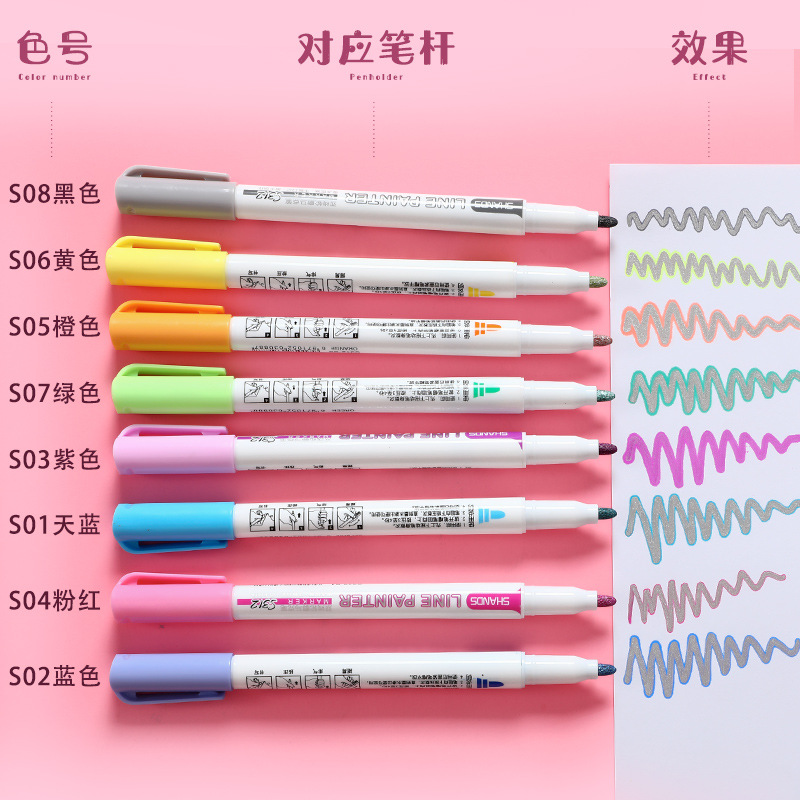 Douyin with the same double-line outline pen color marker note marker pen set multi-color pen cute flash pen creative hand account pen hollow three-dimensional silver fluorescent dream super cute candy-colored pen