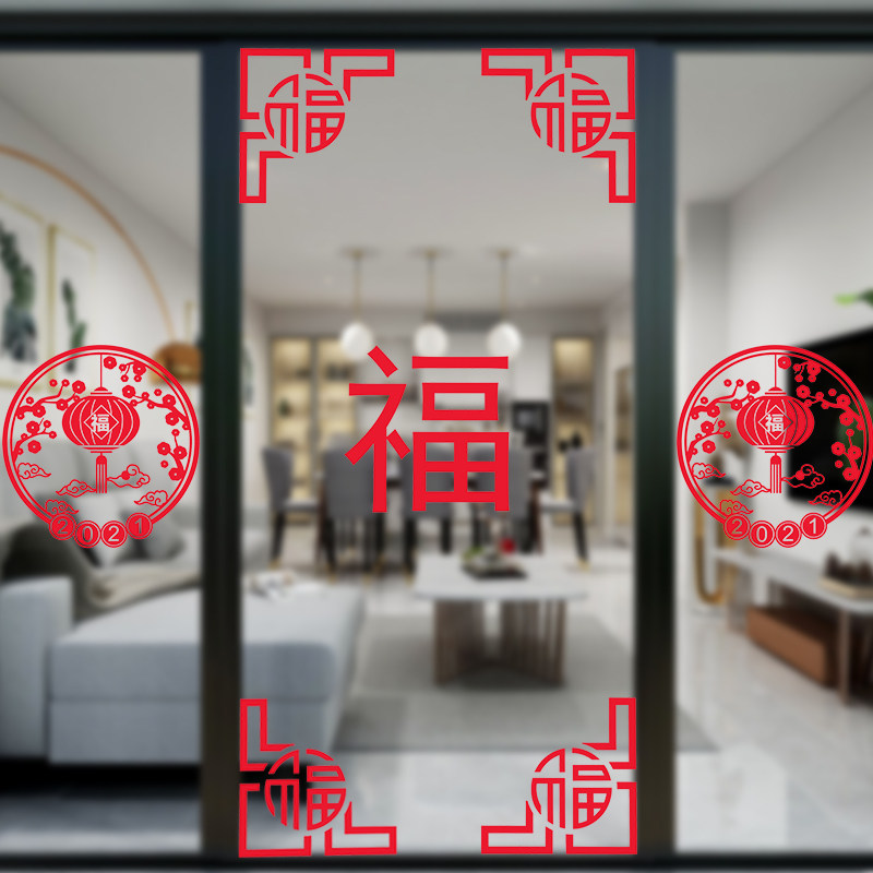 2022 New Year's blessing word door stickers window decoration electrostatic stickers glass stickers paper-cut wall stickers self-adhesive large blessing stickers
