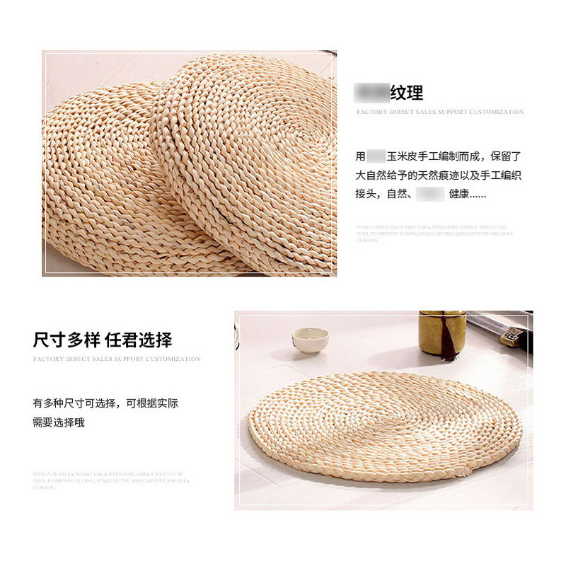 Japanese straw futon seat with thick round seat on the floor, meditation, mat, tatami mat, household stool