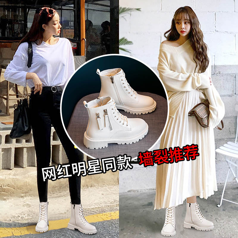 Leather side zipper Martin boots women's 2022 new autumn and winter all-match thick bottom plus velvet British style heightening short boots